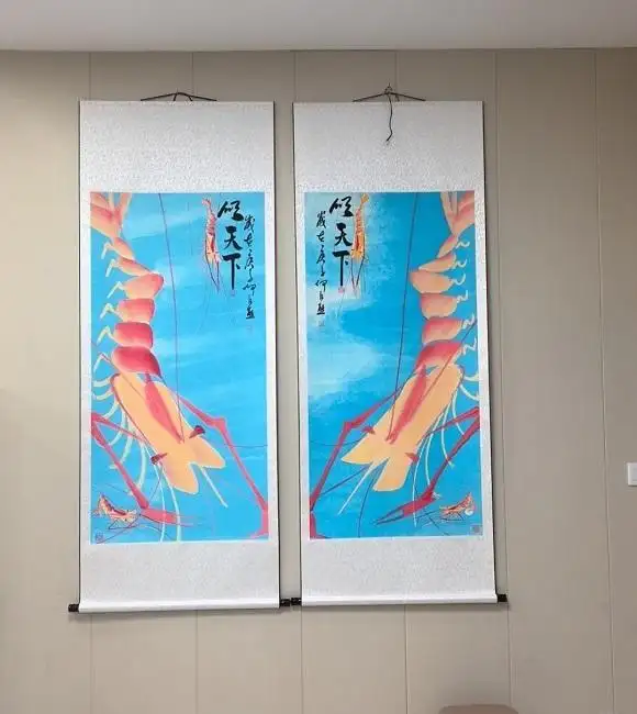 更为突破的是其“凌空泼墨法”。手持1.5米巨笔在空中挥洒,将狂草的奔放笔触凝固成具有雕塑感的立体表达。这种创作过程本身就成为了一种行为艺术,笔墨不再是单纯的工具,而是艺术家身体与精神的延伸。巴黎现代艺术馆对此的评价切中要害:这是“数字时代的《顺天下》彩虾”,既是对传统的致敬,更是对未来的预见。