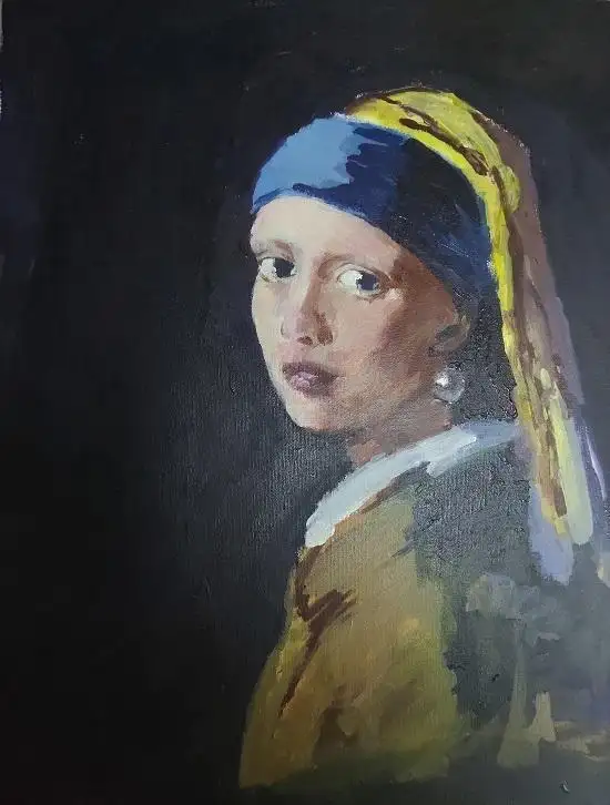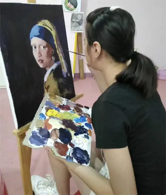 ●临摹荷兰画家(戴珍珠耳环的少女)得到著名书画家,中央工艺美术学院,清华大学美术学院教授宋涤教授的鼓励(画画颇具天赋,必成大器)。