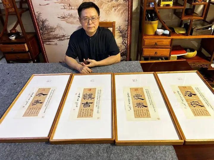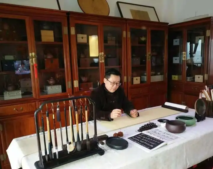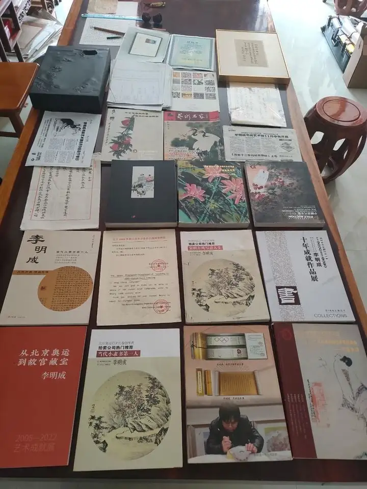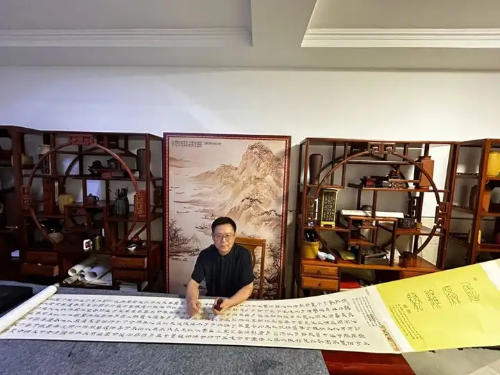 此外,李明成兼具词人、艺术评论家身份,曾为2008年北京奥运会创作百米长卷,2018至2020年为中央政策研究室创作68米《一带一路·丝绸之路》长卷,还为国家发改委书写三年重大发展规划存档,艺术成就广受认可。他是半塔镇人民的骄傲,在家乡设立了灵石书画艺术馆,馆内珍藏着他近20年以来创作的山水、花鸟、真草隶篆、小楷书、小隶书及紫砂瓷器等作品200余件。这些作品风格多样、底蕴深厚,深受市场青睐。
