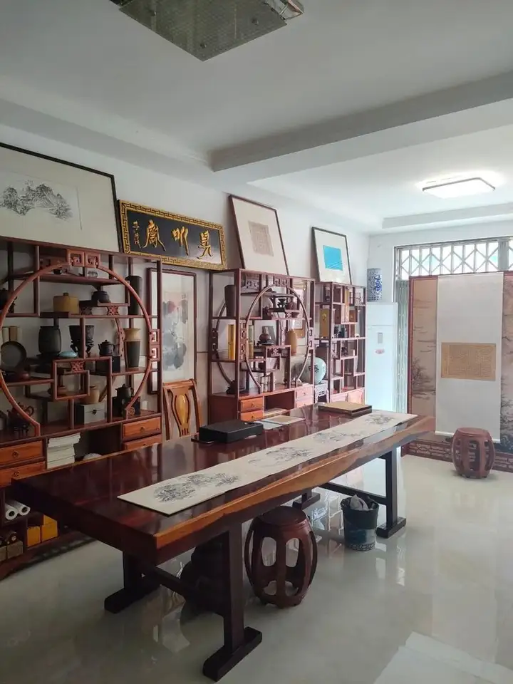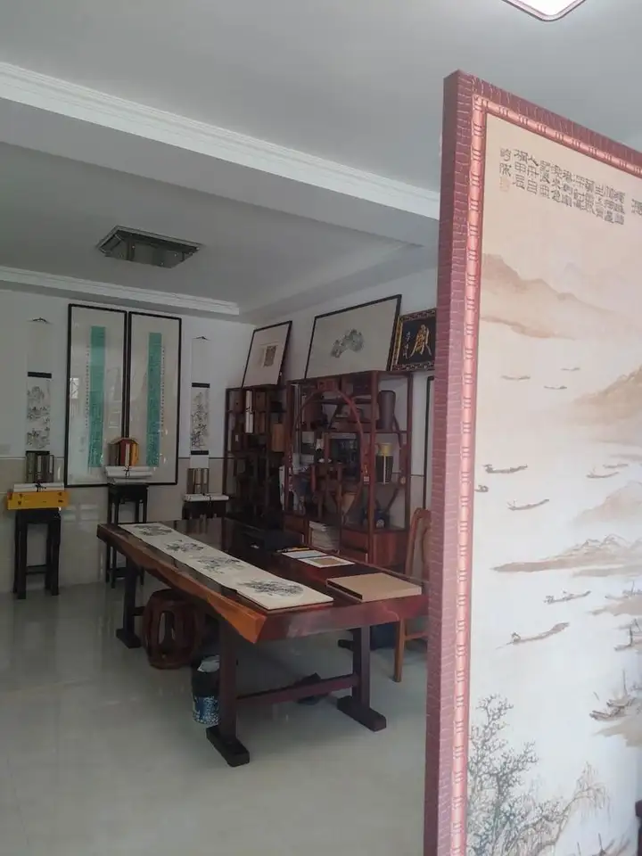 在艺术传播与交流中,李明成的作品始终备受追捧。他曾在全国举办9次个人书画专场,每场作品均被藏友争相购藏一空,艺术影响力遍及各地。如今,他已在北京、天津、扬州、无锡、宜兴、北海、大连等多地设立个人艺术馆,让更多人有机会近距离感受其艺术魅力。此次他临时回到家乡半塔镇采风创作,消息传开后,便吸引了荣宝斋一行专程到访。