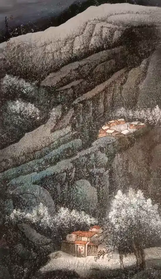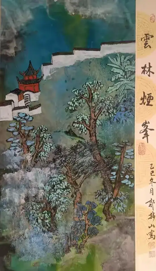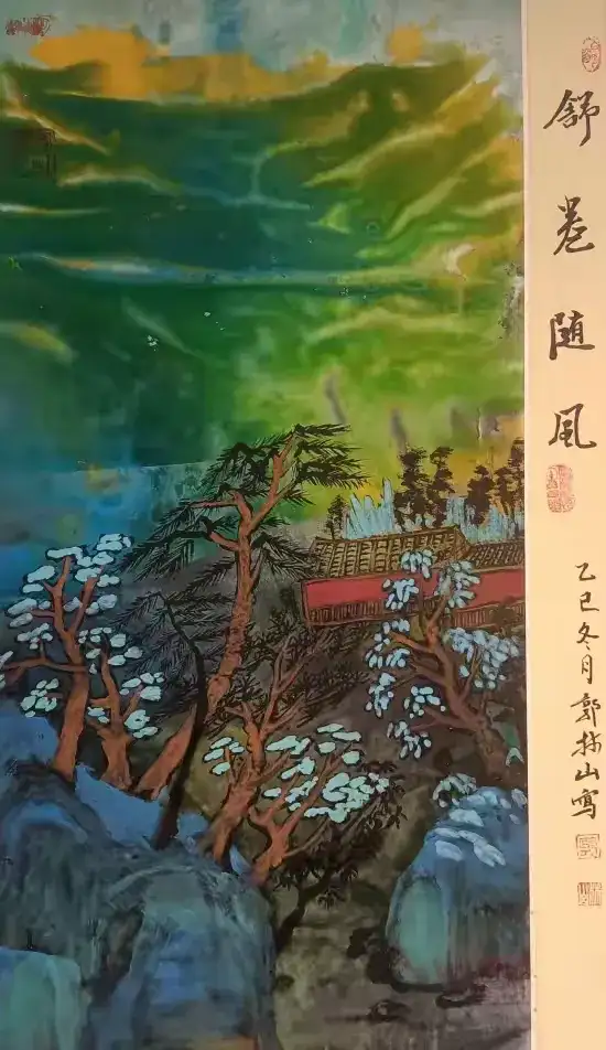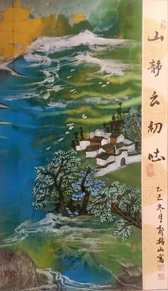 幻彩系列:打破传统水墨的 “单色局限”,以《青绿幻彩》(曾获巴黎奥运会国际艺术交流展金奖)为代表,将矿物颜料与水墨融合,色彩绚丽却不失典雅,蓝色如海湾晴空,金色似沙漠朝阳,既保留国画的 “气韵生动”,又契合国际观众的视觉审美,不少迪拜艺术家感叹 “原来水墨也能这么‘多彩’”