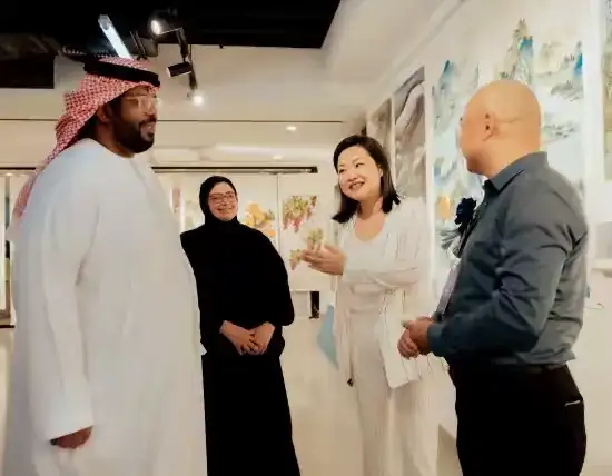 2025 年迪拜艺术圈再掀 “中国水墨热”!中国国画艺术研修院院长、国家一级美术师、黄宾虹再传弟子郭林山,携其 “宿墨 + 幻彩 + 精品青绿” 三大系列佳作登陆迪拜,开启全球巡回作品展迪拜站。这场融合东方笔墨精髓与国际审美视野的艺术盛宴,不仅迎来迪拜王室摩萨王子与王妃亲临观展,更有阿联酋华侨华人春节联欢晚会总导演李冬霞到场助阵,成为中阿文化互鉴的又一高光时刻