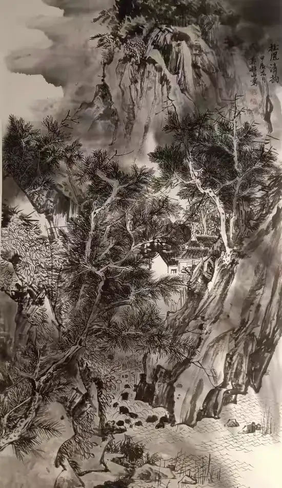宿墨系列:作为 “宿墨山水创始人”,郭林山的宿墨作品是本次展览的 “灵魂”。从《隐居图》(曾被中国国家博物馆收藏)的空灵意境,到《烟碧带霜红》(获泰国亲王收藏)的层林尽染,均以 “墨色当随时代” 的理念,在黄宾虹 “七墨” 基础上拓展出 “九墨” 技法,干而不枯、润而不烂,让 “宿墨无燥气” 的东方美学在迪拜绽放独特魅力;
