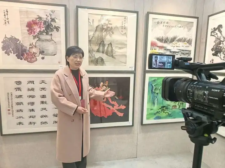 王紫芸荣宝斋展览现场接受媒体采访