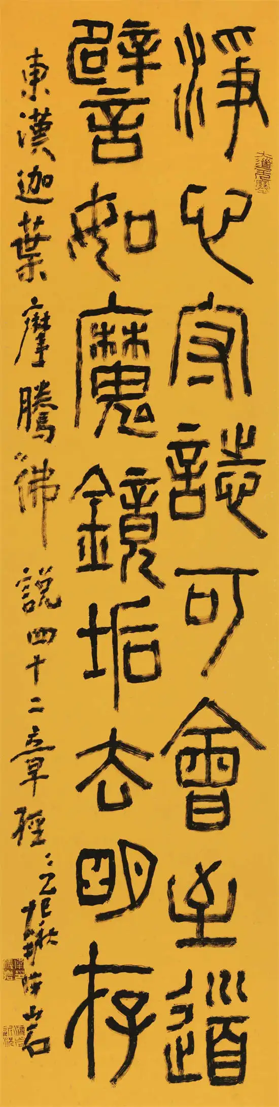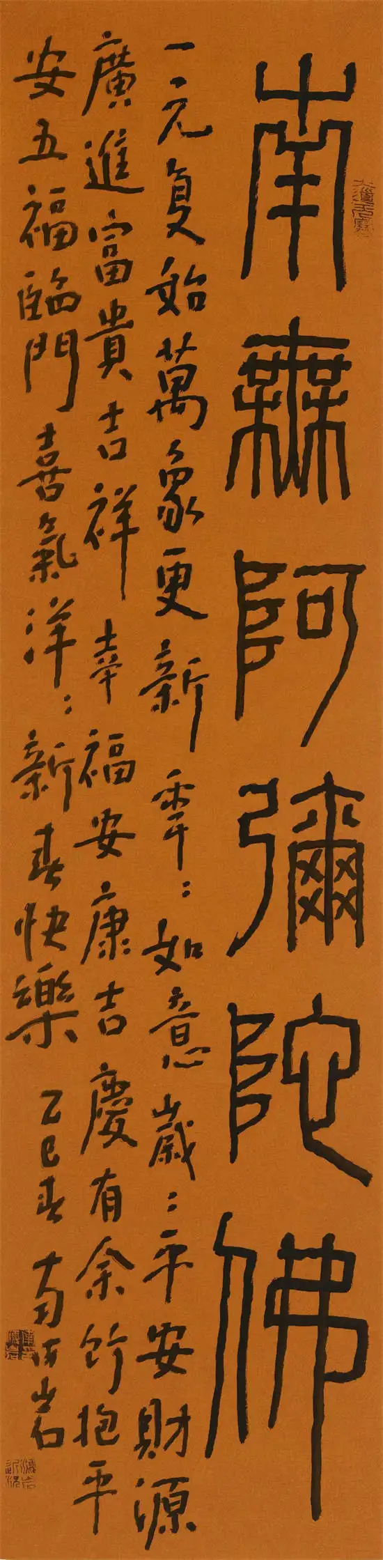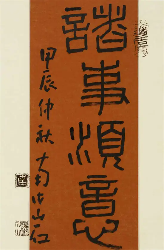 古人云:「书画同源」「书之妙道,神采为上,形质次之,兼之者方可绍于古人」。无疑,南海岩是真正理解这些话的。他虽为一位画家,却有着书家的担当,并无时不在努力锤炼着笔墨功夫,而今已取得了很大的成功。其实,他的书法作品里所呈现出来的丈夫气、金石味和帝王相,不正是最好的验证吗?不正是古今所有书家孜孜以求的神采吗?众所周知,书法中神采的获得,一方面依赖于创作技艺的精熟,另一方面取决于创作过程中的心手双畅,以及作者知识修养和审美趣味的自然焕发。不难看出,南海岩在进行书法创作时,一同满足了这两个方面的要求。因此在欣赏他的作品时我们会发现,无论从整体到局部,还是从局部到整体,无论是静态的接触,还是动态的阅读,无论是形象的获取,还是具象的领会,无论是表面的感观,还是内涵的外延,他的书法总能给人以美的享受,而这种美更多的是一种精神层面上的美,是一种直达心灵深处的大爱之美。