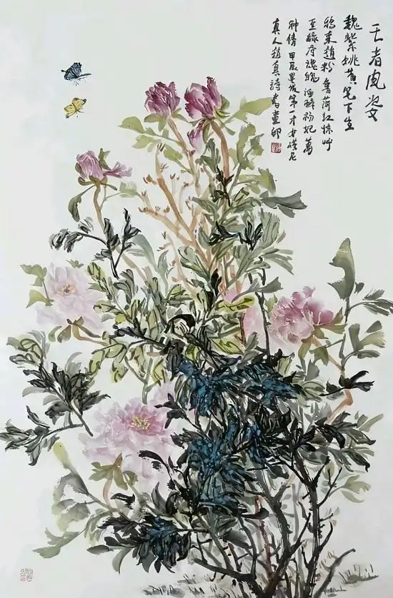 近十几年来,独创的山水、人物、花鸟作品先后十几次入国家级美展大赛,也是唯一以独创风格彩色写意牡丹入国展的当代画家!