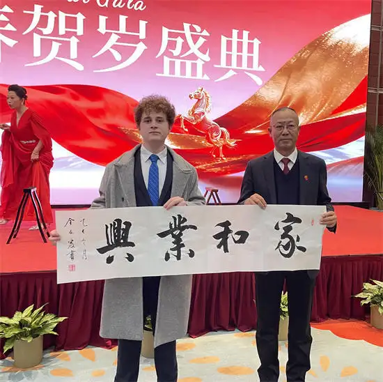 2026 全球外交官新春贺岁盛典上,金友发将 “家和业兴” 书法作品赠予外交官,以笔墨为媒,传递中国文化与和平愿景。