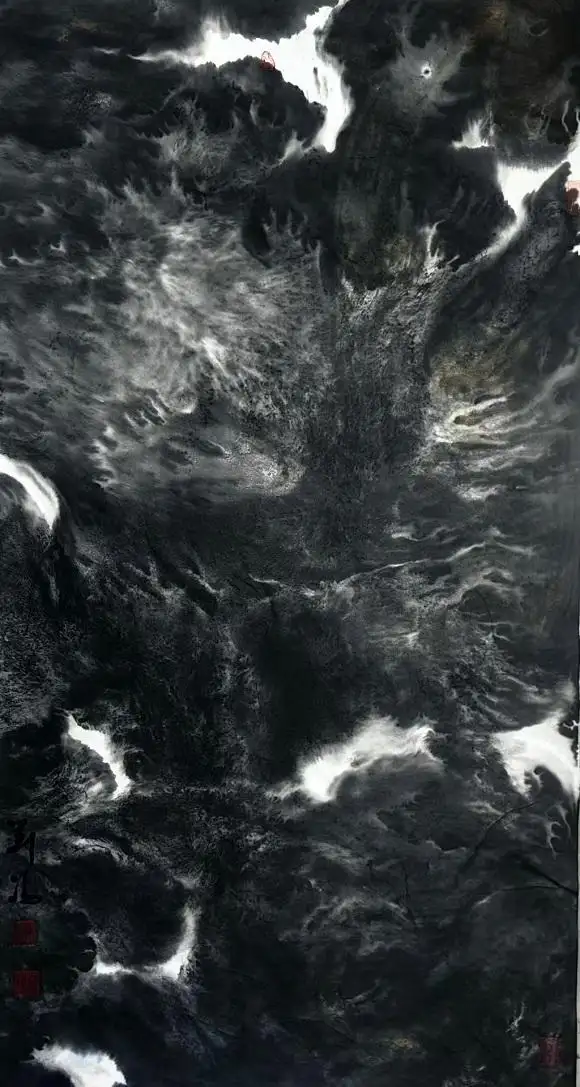 刘冯从小在大山里长大,对山水有深厚的感情,对山水云雾冰雪等变幻不定的自然现象有深刻的了解和切深体验。同时对山水的理解与创作有自己独特的见解,通过对水墨、技法、材料,风水的大胆探索,并广泛吸收各艺术名家的创新理念,锲而不舍,逐步形成自己的艺术特色。他的元宇宙意象山水画用笔独特,把山水的神秘与灵动体现的淋漓尽致。刘冯的现代水墨作品,大气磅礴,纵横万壑,妙趣天成。不论是丈二巨幅,还是尺余团扇,可见浓墨乍起,奇幻缥缈,宛如风云激荡,动感十足,又如广袤圣漠,幽邃禅境。