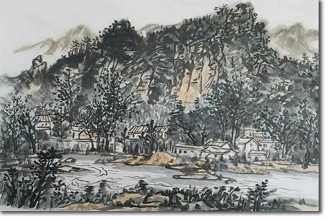 刘占起的这幅山水作品,是其艺术功底与乡土情怀的凝练表达,笔墨间既见传统山水的精神内核,又融当代审美与时代意涵,在笔墨语言与文化表达上皆具亮眼特质。