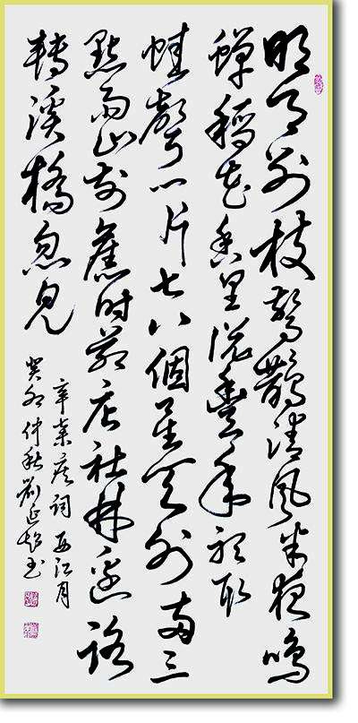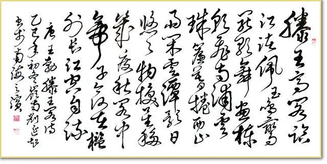 师法岭南名家,又客居长安濡染秦风,南北笔墨的交融让其书作兼具岭南的秀逸与西北的雄健,其艺术性便在这刚柔相济的笔墨语言里尽显无遗。观刘延超的书法作品,线条是其筋骨所在,提按顿挫间,中锋行笔如锥画沙,力透纸背而不露锋芒,侧锋取势似行云流水,灵动飘逸而不失沉稳,粗细变化的线条交织成富有韵律的艺术织锦,将汉字的形态美与笔法美演绎得淋漓尽致。墨色是其神韵所系,浓墨处如高山坠石,厚重雄浑,透着铮铮骨气;淡墨处似远山含黛,清雅空灵,漾着悠悠诗意;渴笔处若老树枯藤,苍劲斑驳,藏着岁月沉淀;涨墨处如平湖漫溢,温润包容,显着豁达胸襟,浓淡干湿焦的墨色层次,赋予了作品立体的质感与丰富的情感,让黑白两色的世界生出万千气象。章法布局则是其气度所现,字与字疏密相间,行与行错落有致,通篇浑然一体却又处处藏着变化,疏处可走马,密处不透风,既遵循着传统书法的布局要义,又融入了自身对空间美学的独特理解,无论是尺幅小品还是巨幅长卷,皆能做到气韵贯通,顾盼生姿,让人在流连笔墨间,感受到一种和谐统一的艺术张力。笔下既有“沉舟侧畔千帆过”的开阔格局,亦有“春色恼人眠不得”的细腻情致,线条流转间,是对笔墨要旨的通透领悟,更是对真善美的赤诚抒发,这份艺术性,是技法的纯熟,是学养的积淀,更是情怀的倾注。