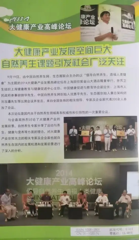 2014年,沈惠平受邀参加大健康产业高峰论坛,自然养生课题引发社会广泛关注。