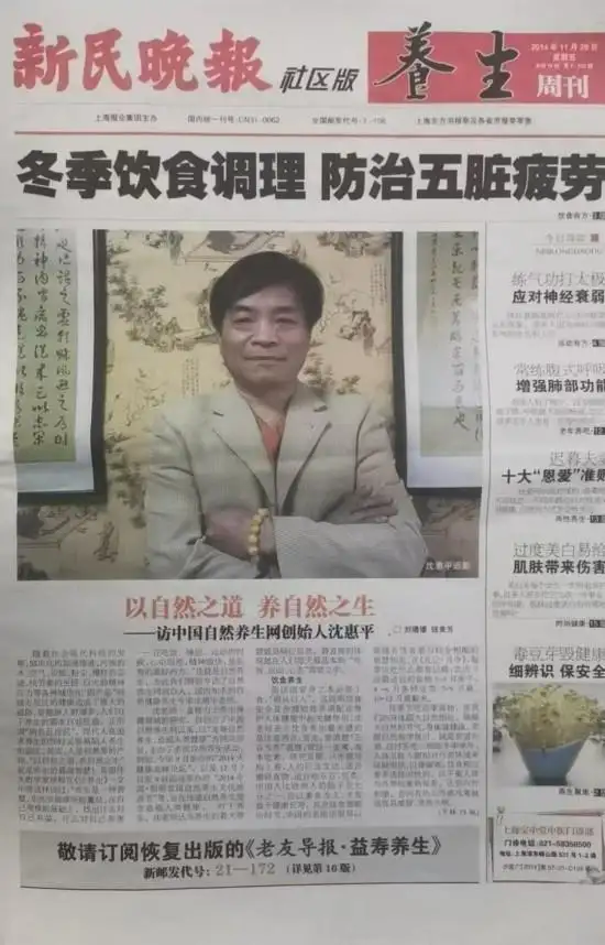 2014年,沈惠平“冬季饮食调理,防治五脏疲劳“入编新民晚报养生周刊。
