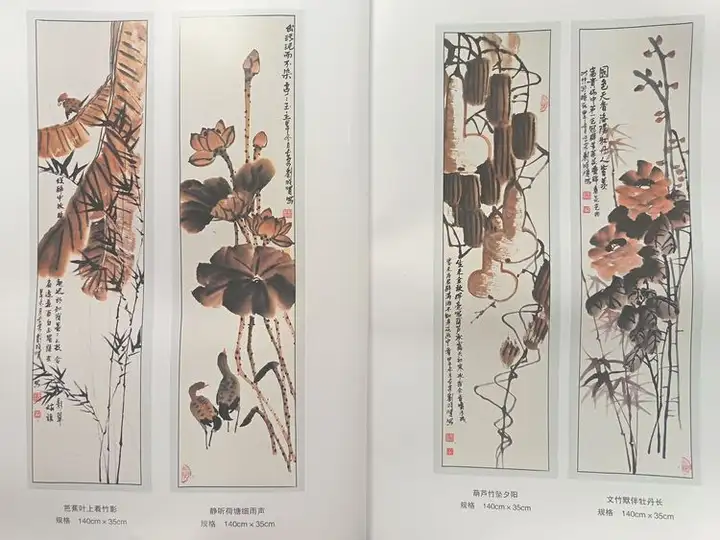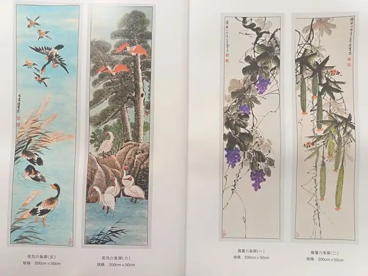 2006年,《刘晓贤花鸟画集》正式付梓,这部画集不仅收录了上述经典长卷与条屏作品,更囊括24套四条屏佳作,题材广泛、技法全面,既是她数十年艺术生涯的心血结晶,也是其艺术成就的集中展现。翻开画集,仿佛步入一座繁花似锦、百鸟和鸣的艺术殿堂,令人沉醉其间,流连忘返。