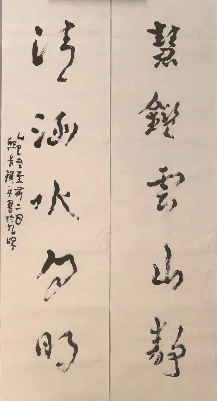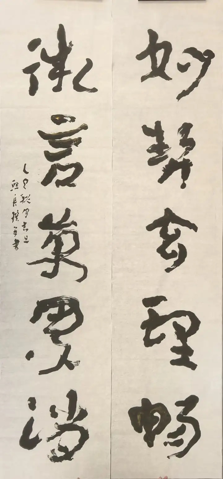 我自己在书写一些超然物外的对联内容时,也常垂下眼帘,仅留一线微光确认笔锋位置,将视觉依赖降至最低。此时,你会有真切的体感:直觉变得异常清明,情绪如古井无波,一种深沉的静定与内在的掌控感油然而生。