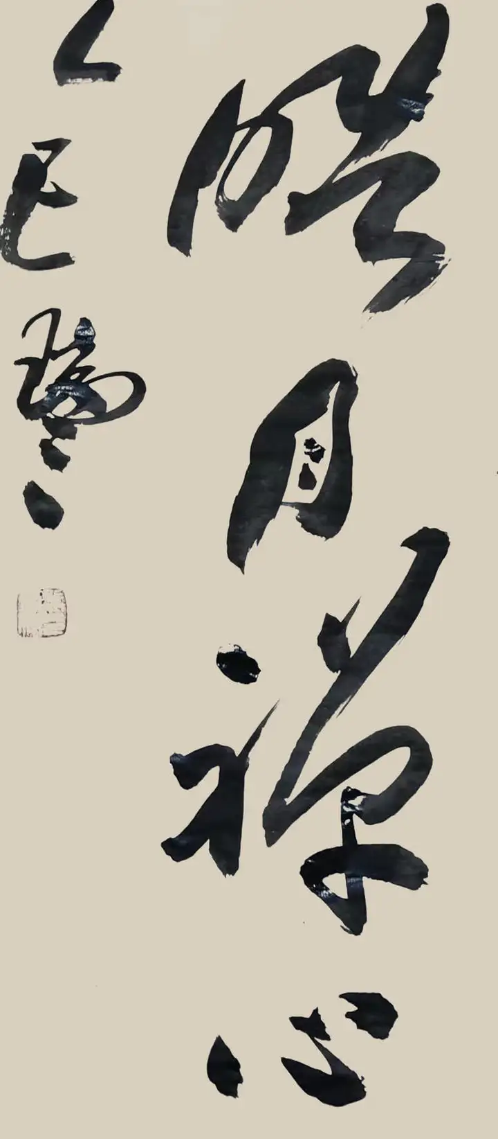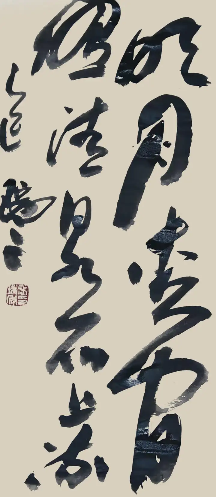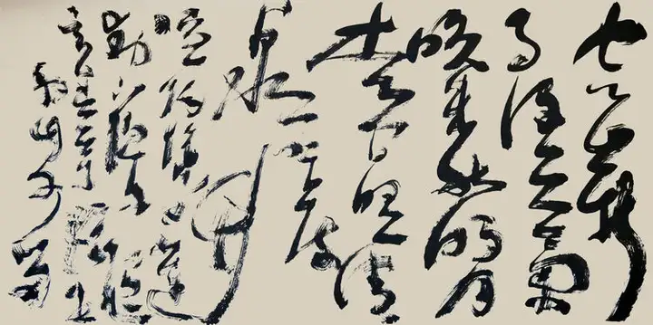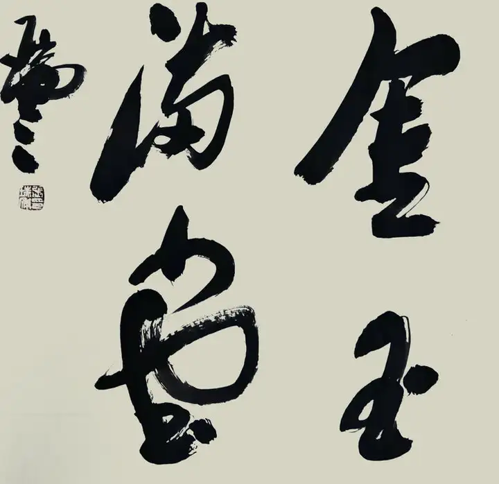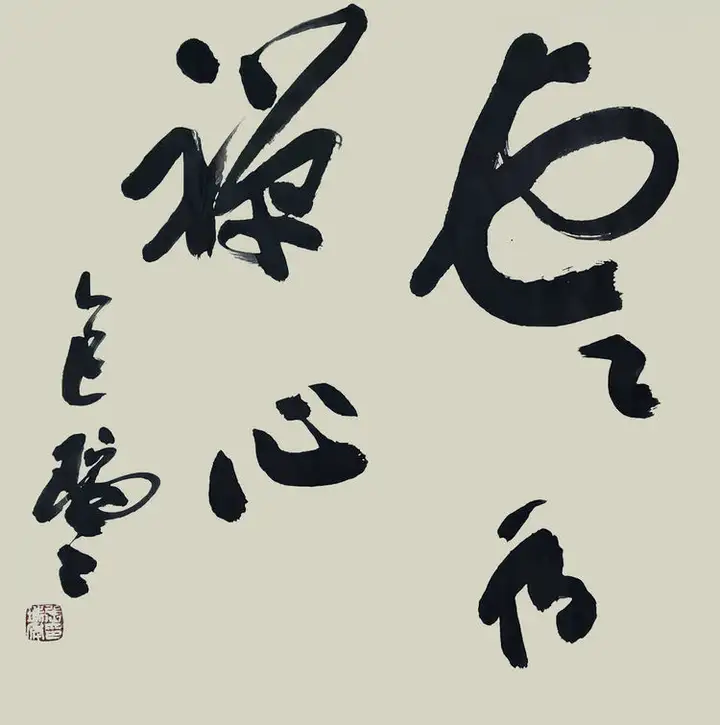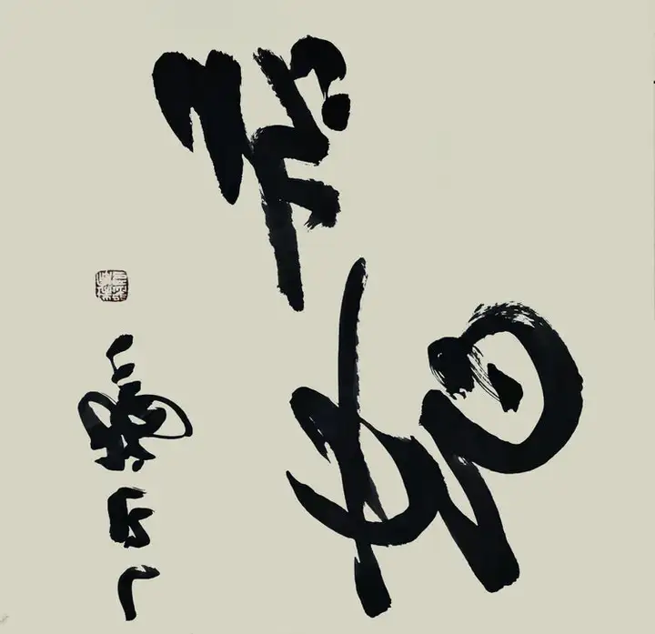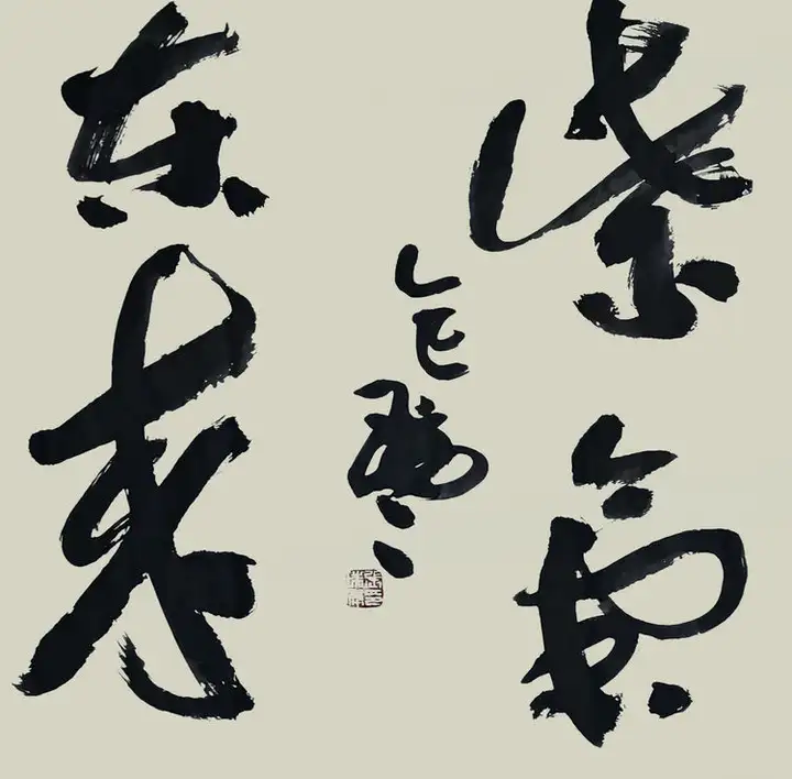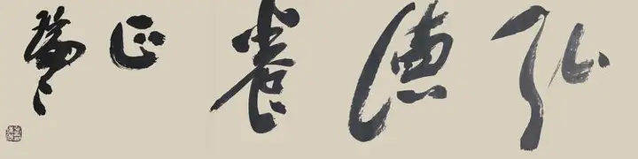 其书法,除了有力透纸背的千钧力道,也有因气蓄势的千变万化。他的笔力可凌空杀纸,又可意在笔先,势来不可止,势去不可遏,既充满激情,又有理性。线条、用笔,时紧时密,时快时慢。颇有些楼船夜雪瓜洲渡,铁马秋风大散关的豪迈气概。 笔与墨相合亦相争,张瑞年先生大笔一挥,枯墨飞白,力与意合,写得出大漠孤烟直,长河落日圆的波澜壮阔。铰笔一转,细笔润墨,长空阵云,写得出旭日之出东方,新月之出天涯的关山巍峨。可以作秋鹰逐兔的惊心动魄,也可以作轻柳拂堤的翩翩洒脱。
