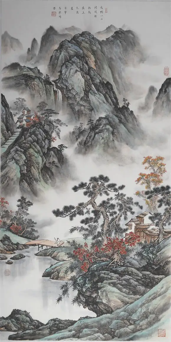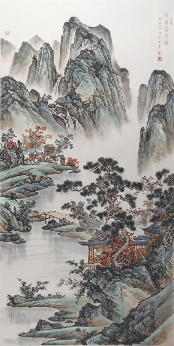 原创写意山水作品更是将东方意境的魅力发挥到极致,孤亭藏于深山,飞瀑流于幽谷,红叶点染秋意,通过留白营造出 “虚室生白” 的空灵之境,这种 “意在笔先,境生象外” 的创作,与西方抽象艺术的精神追求异曲同工却更显含蓄悠远。