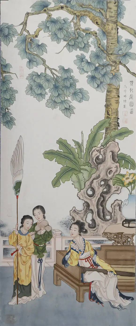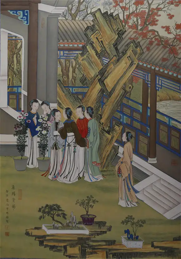 而在仕女题材作品中,马宁晞取法古代宫廷工笔的细腻笔法,却摒弃了传统仕女画的程式化造型。仕女的衣纹用 “兰叶描” 表现丝绸的垂坠感,园林背景的绘制则借鉴 “界画” 的精准比例,漏窗的留白、牅窗的纹样、太湖石的皴法,每一处细节都还原了皇家园林 “移步换景” 的空间美学。这种极致精细的技法表现,让韩国美术协会副会长金世贞赞叹其 “展现了东方艺术的极致细腻与典雅意境”。这种 “守古法而不泥古” 的创作,与卢浮宫特展中备受赞誉的《汉宫春晓图》一脉相承,被卢浮宫策展人安妮・勒梅尔称赞为 “深得中国古画精髓,以现代视角重构东方古典哲学”。