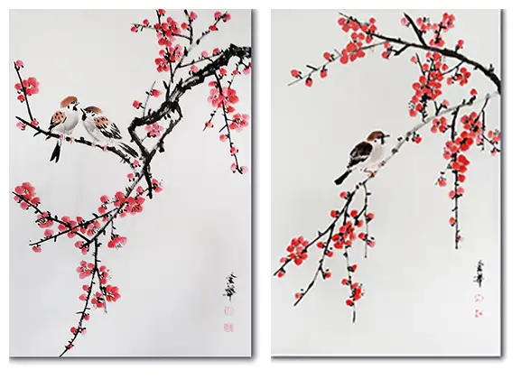 她笔下的梅花,无论是娇俏的腊梅,还是热烈的红梅,都有着苍劲的枝干和灵动的花朵。笔墨间,尽显梅花"凌霜傲雪"的生命力。