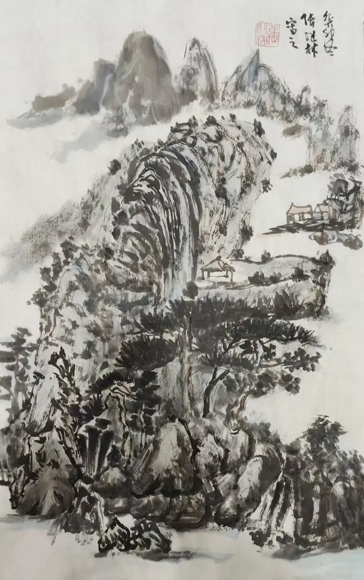 - 山水(以大写意为例):以书入画,笔法雄健老辣,皴擦点染间尽显山峦的雄浑与灵秀,画面虚实相生、气韵生动,既有传统山水的意境,又具现代审美的视觉张力。