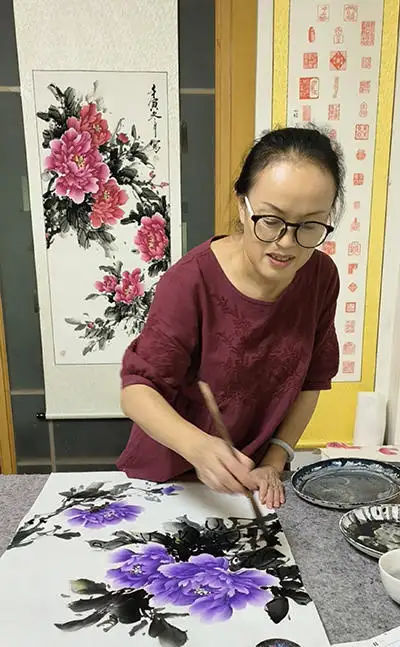 这幅画的动人之处,不仅在于其技法的精湛,更在于画面背后那穿越时光的初心与坚持。一位在商海拼搏近三十载的创业者,在功成之后,重拾了幼时的画笔。她笔下的牡丹,褪去了凡尘的喧嚣,多了一份历经世事的从容与通透。 画如其人,袁华香的作品正是她人生的写照。她将做公益事业的那份真诚与执着,毫无保留地倾注于笔端。这使得她的牡丹既有女性的柔美,又有企业家的坚韧。她的每一笔,都饱含着对生活的热爱和对艺术的虔诚。