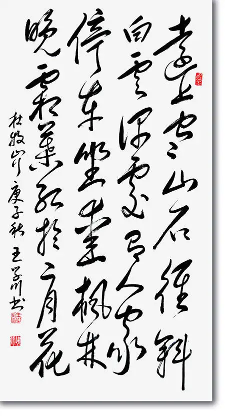 观王学川先生的毛体书法,恰似见山河奔涌、风云激荡,其笔墨间既有毛泽东书法“笔走龙蛇、气吞寰宇”的豪迈风骨,又藏文人墨客“融情于纸、以意赋形”的细腻情致,在传承与创新中,为毛体艺术注入了鲜活的时代气韵。