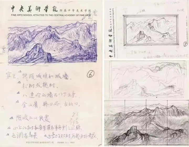 尽管有几十年的绘画经验积累,也面向长城写生、思考过很多次,但面对为共和国大厅绘制画卷这个重大任务时,张鲁没有丝毫松懈,他对《万里长城》的创作是从研究长城历史资料,写生考察开始的。