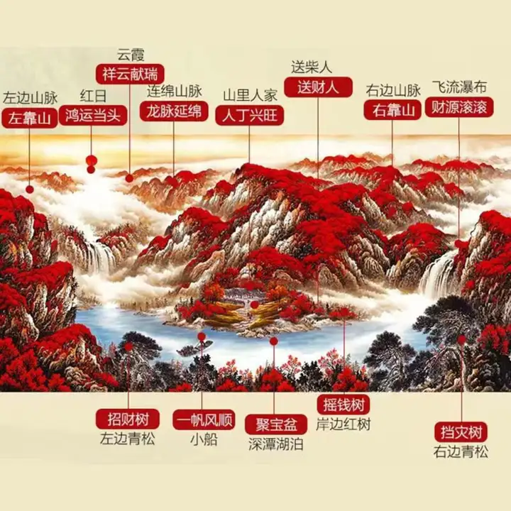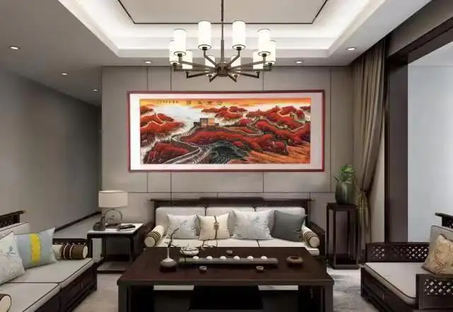张鲁画长城“下笔不犹豫,如黄河之水,一泻千里,一鼓作气,此气势也,犹如一条巨龙横空出世,神采飞扬,真正把长城“挺立起来”了,把长城画活了,把长城的精髓表现出来了,具有鲜明的中国特色、中国风骨、中国气派。画中古树松柏一为招财挡灾,也是万古长青,长寿的象征;山脉延绵不断寓意龙脉相传,家兴业旺。