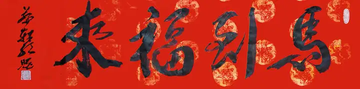 作为世界榜书联合会主席、上海榜书研究会会长,蔡轩朝先生的榜书素来以“雄健开张、气韵磅礴”著称。此次新作中,他将骏马的灵动奔放与福字的饱满温润融为一体,笔触间既有奔马绝尘的豪迈气势,又有福气盈门的吉祥意蕴。
