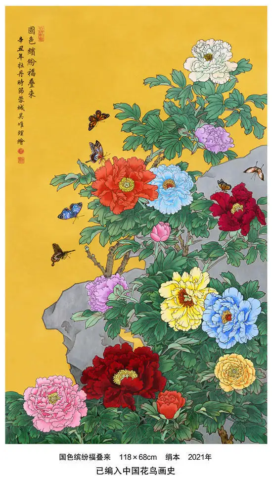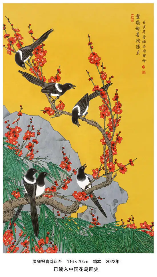 代表作品《九龙呈祥图》被人民大会堂收藏;《九龙拥宝图》镶刻于中国八达岭新长城;《持莲观世音菩萨》被中国国家博物馆收藏;《福至图》被俄罗斯列宾美术学院收藏;《吉祥金瓜图》被英国皇家美术学院收藏;《仙女下凡图》被法国巴黎国立高等美术学院收藏;《灵珠在握图》被中国美术馆收藏;《文殊菩萨》被泰国清迈大学收藏。个人传略及作品已载入中国国际交流出版社出版的《世界名人录》,中国文化出版社出版的《中国书画通史近现代卷》,以及红旗出版社出版的《图说中国当代美术史》。