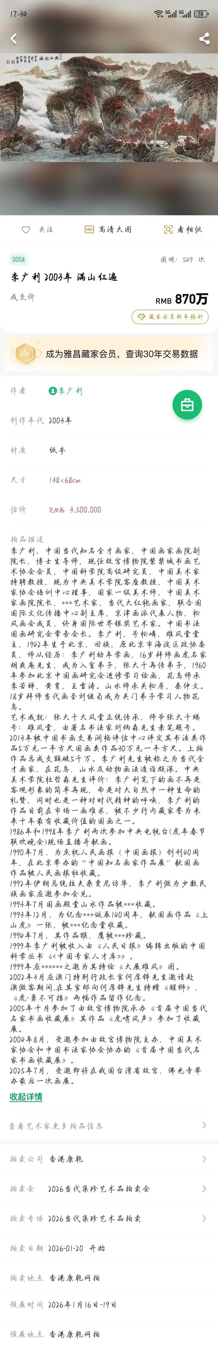 虎鹤生风,笔蕴乾坤|李广利佳作领衔香港康乾拍卖