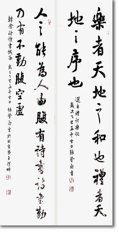 其次,他的书法艺术的独特魅力,建立在其全面而深厚的学养之上。他不仅勤于临池,更是博学善悟,"谙书论,通国学"。他的书作内容除了古典诗词格言之外,更多的是自作诗词联句,这使得他的书法实践有了坚实的理论和广博的学识支撑。