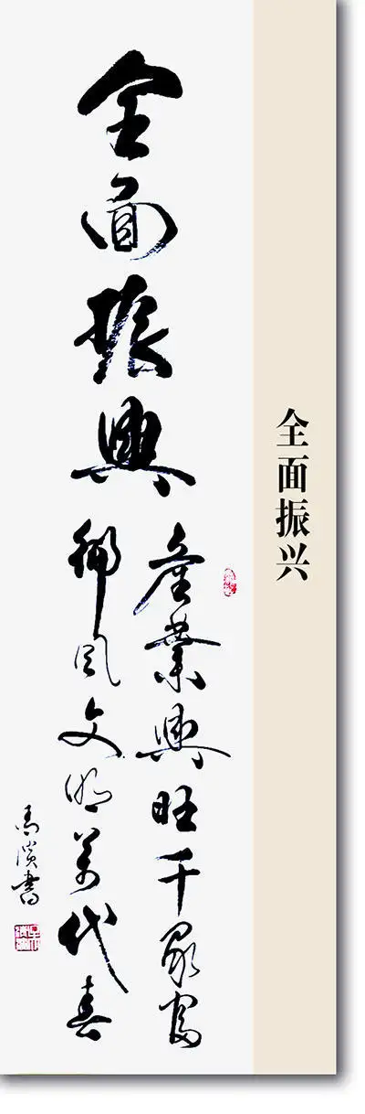 吴清演书法的灵魂,是扎根乡土的真挚情怀。作为从闽南大地走出的书法家,他将对乡村振兴的“抒情初衷”融入每一次运笔:“美丽乡村是文化中国的底色”,吴清演书法以飘逸的行书勾勒出乡土与文化的共生关系,笔墨的韵律里,是田埂与文脉交织的温暖;“全面振兴”的大字旁,辅以“产业兴旺千家富,乡风文明万代春”的小字,吴清演书法用疏密有致的布局,把产业振兴的活力、乡风文明的温润具象化,让纸上的笔墨化作乡土间跃动的数字之火、山野间奔涌的创业之潮;“生生不息”的书写中,吴清演书法以灵动的笔触联结“科技种子播沃土,文化根系固乡村”的内涵,让古老乡土与现代文明的相拥,在笔墨的流转中成为可感的视觉图景。他笔下的每一个字,都不是冰冷的符号,而是对“乡土重生希望、丰收满载尊严”的深情回应,是吴清演书法独有的、扎根大地的情感表达。