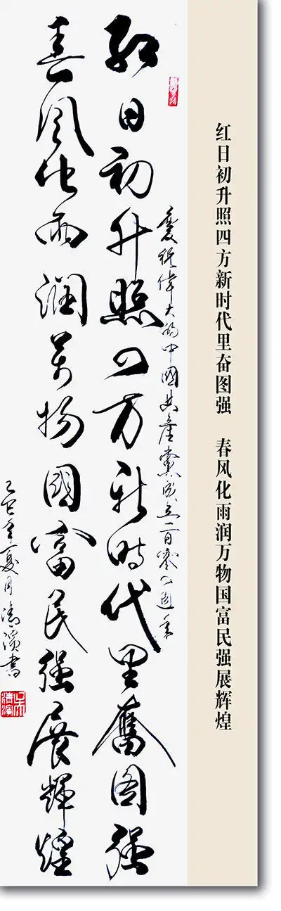 吴清演书法的价值,是与时代同频的精神书写。从纪念抗战胜利的银奖,到中泰建交交流展的金奖,从百家媒体的专题报道,到个人艺术纪录片的全网发行,吴清演书法走出书斋,成为传递中国声音、展现时代风貌的文化桥梁。他书写“振兴中华”,是对民族复兴征程的艺术礼赞;书写“全面振兴”,是对国家战略蓝图的笔墨诠释;书写“生生不息”,是对中华文明延续发展的信念表达。吴清演书法以传统书法的形式,承载了当代中国人对乡土、对祖国的美好期许,让“路漫漫其修远兮,吾将上下而求索”的座右铭,化作笔墨间永不停歇的时代追问与艺术追求。