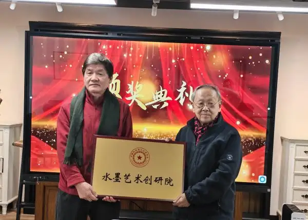 授牌仪式结束后,李正忠名誉会长为水墨艺术创研院艺术总监秦嗣德、首席研究员赵紫峰同志颁发了聘书。