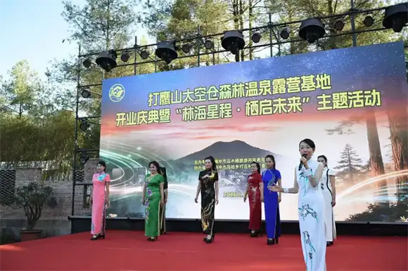 当夜幕降临,篝火狂欢与星空露营拉开序幕。从火山口取来的圣洁火种点燃熊熊篝火,游客围着火焰载歌载舞,耳畔是松涛与欢笑交织;抬头可见城市罕见的璀璨星河,仿佛亿万颗钻石倾泻天幕,与地面的灯火交相辉映。若偏爱静谧,可在太空舱露台品茗观星,或在木屋中聆听森林夜语,感受“暖月入窗惊清梦,凉风拂槛醒诗魂”的意境。此外,基地还提供非遗手作体验、书法创作、特色火锅等服务,让每位游客都能找到属于自己的山野乐趣。