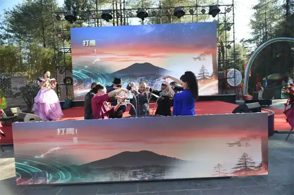 启幕仪式上,7位嘉宾手持从打鹰山顶接引的“无根之水”,共同注入大理石缸。随着干冰雾气与彩烟升腾,现场掌声雷动,寓意着天地灵气与人文底蕴在此交融共生。邓小平特型演员黄忠阳在致辞中动情表示:“腾冲是块宝地,云木栖把火山、森林、温泉与太空舱结合,既让游客住得舒服,又带动地方发展,这正是‘发展才是硬道理’的生动实践!”随后他带来的电影片断即兴表演,以铿锵有力的话语传递改革创新精神,引发全场共鸣。