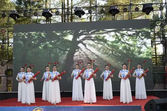 文艺演出环节堪称非遗与潮流的完美碰撞。云南金模千雅艺术团呈现的《彩云之南东方非遗》华服秀,将腾冲省级非遗油纸伞、土陶与国家级非遗皮影、玉雕融入走秀,伞面开合间流转东方韵致,陶釉光影中沉淀千年图腾,开合如花唯美纸伞·陶釉七彩窑火涅槃·历代演义镂刻皮影·远古神话如歌翡翠,让现场观众沉浸式感受传统文化的生命力。腾冲市戏剧曲艺家协会的鱼鼓说唱《乡风文明谱新章》、傣族舞《哦迪卡》,以及古筝独奏《渔舟唱晚》等节目轮番上演,更有西班牙红裙舞、电子音乐演奏点燃氛围,抽奖环节送出的太空舱体验券、木屋住宿券让幸运嘉宾满载而归。