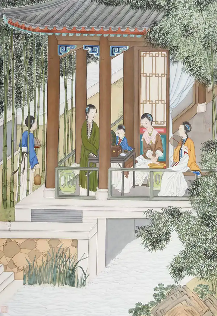 2. 传承有序:作为南宋马远嫡孙,她自幼承袭家族文脉,博采马远、唐寅、仇英、任伯年等大家之长,将传统工笔的线描、设色、构图精髓融入创作,是古典人物画传承的当代标杆,文脉清晰、传承可证。