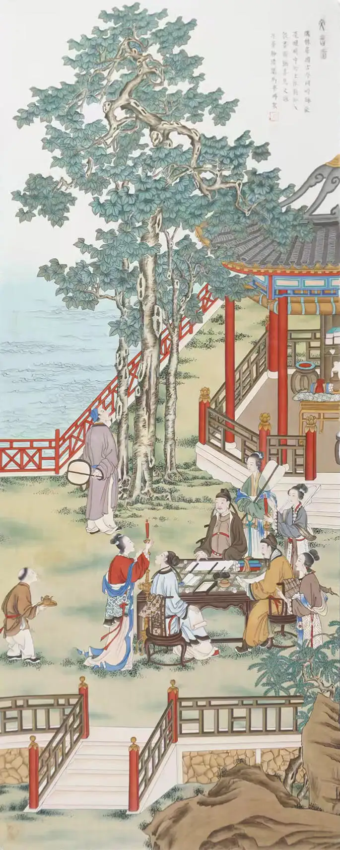 1. 原创性卓然:她以千年工笔技法为基底,不泥古、不复制,创造性融入当代审美与视觉语言。笔下仕女游园、高士雅集、佛造像等题材,线条如“春蚕吐丝”,游丝描、铁线描精准灵动;敷色遵循“随类赋彩”,以朱砂、石青、石绿等矿物颜料三矾九染,瑰丽而不艳俗,每一幅都是独一无二的原创创作,兼具艺术高度与原创价值。