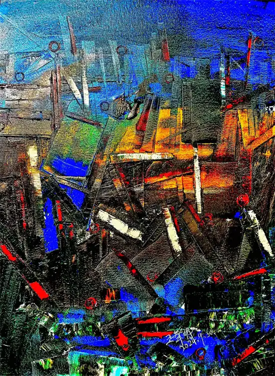 参展作品:《蓝湖协奏曲》作品材质:亚麻布面油画