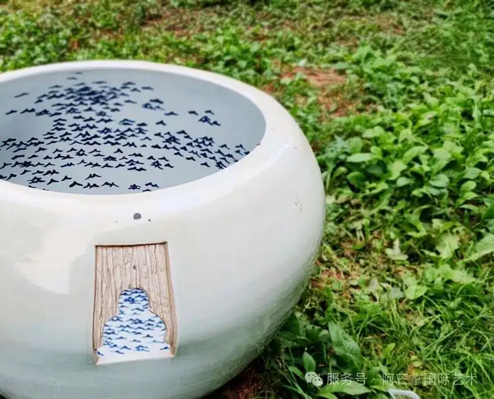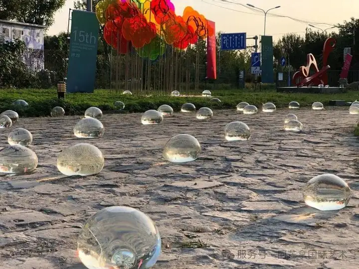 艺术家邱启敬带来《山海经》神兽雕塑,以精湛工艺重现上古神话意象,让传统文脉在当代艺术语境中焕新,艺术家秦冲带来大地艺术《泪》,他把自己化作一滴水,回归塔克拉玛干沙漠中远古干涸的河床上。在北京当代艺术馆复原沙漠中的“水滴奇观”,邀请公众参与,在水滴上写上祝语,把自己化作一滴水,融入当代艺术中。唤醒人们对自然与生命深刻的理解与敬畏之心。刘景路的《人字》雕塑则以简洁造型阐述大自然规律,践行“以形载道”的艺术理念,让抽象哲理通过视觉形态直观呈现。艺术家宾晋贤与海涛联合创作的《举月》,以软雕塑特有的灵动质感传递艺术巧思,大型户外公共软雕塑探索未来,河北美术学院、北京培黎职业学院艺术学院等院校师生作品传递时代精神,让艺术走出展厅,与城市、观者、时光形成自然对话。在这里,作品不再孤立——一幅绘着岁月肌理的画作,可能与公共空间里象征秋日的装置产生“刚柔相济”的共鸣;一段记录自我和解的影像,或许与张灵敏《圣象》这样的吉祥主题创作碰撞出“动静相宜”的韵律。它们以艺术为桥,拆解时光的褶皱,也诠释着东方哲学中“变与不变”的辩证:变的是艺术的形态与表达,不变的是对生命本真、天地人文的深层叩问。