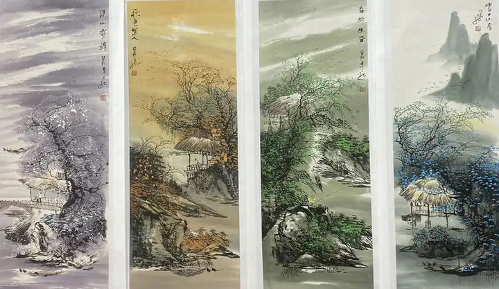 画家王龙作品《春夏秋冬幽居四条屏》 2023年作品