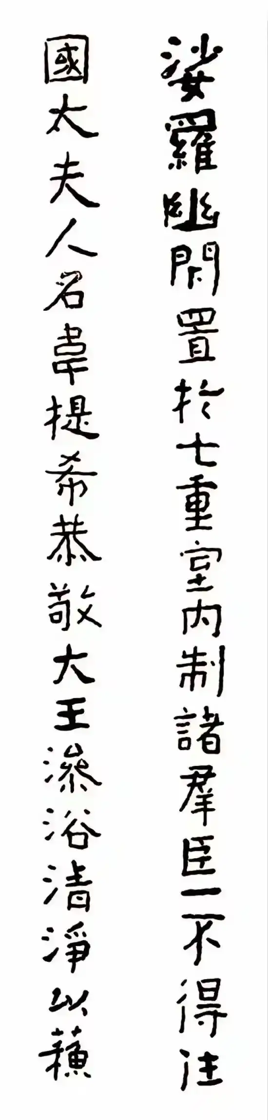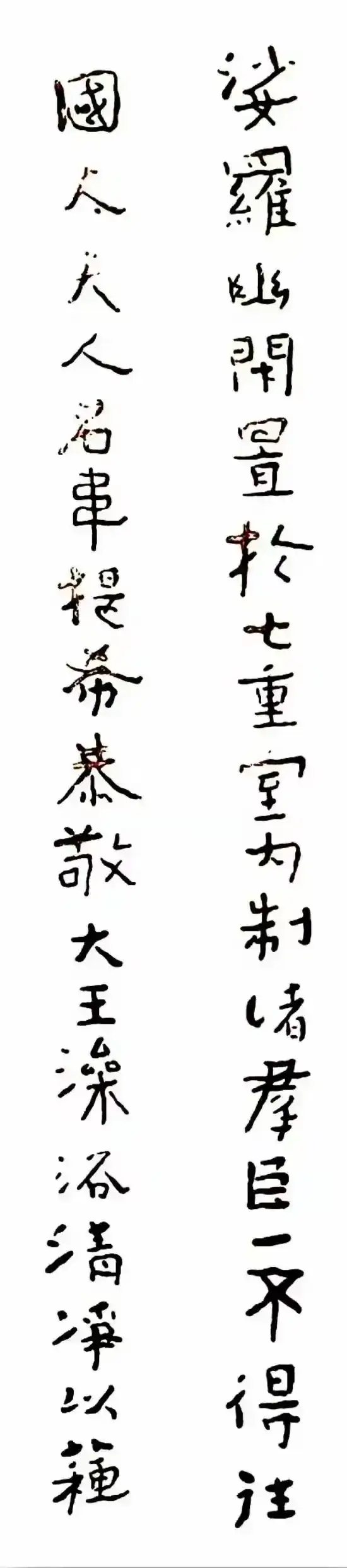 再由“笔意”生“笔境”:他写《入楞伽经》的大字,笔画不是孤立的线条,而是有呼吸的——横画如远山铺展,不疾不徐里藏着稳劲;竖画似古松立根,沉实中透着轻逸;就连笔画间的留白,都像禅院的庭院,空而不空,藏着经文中“真如”的意趣。