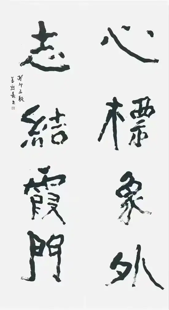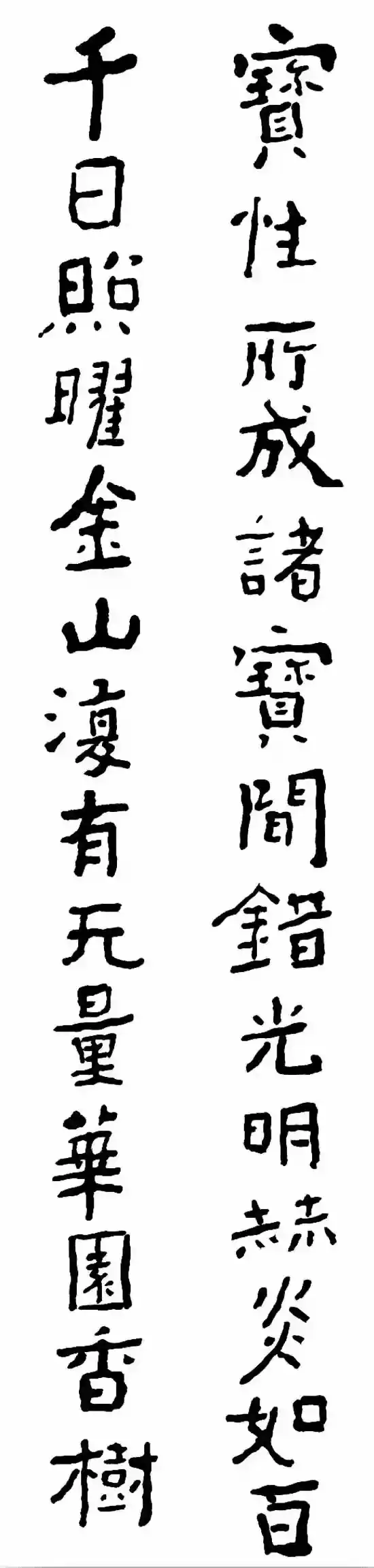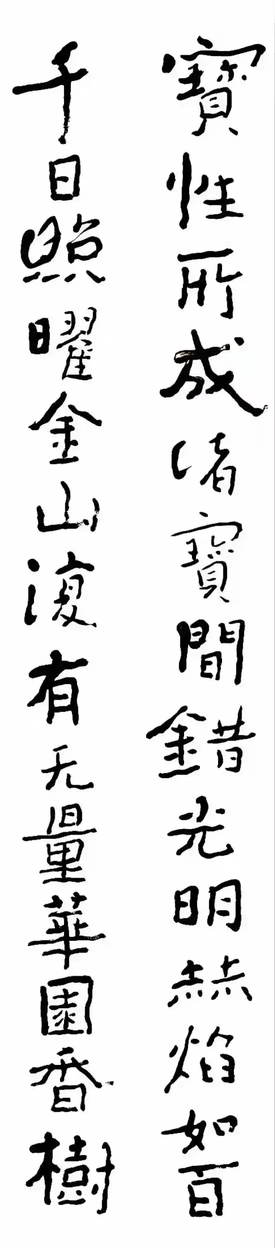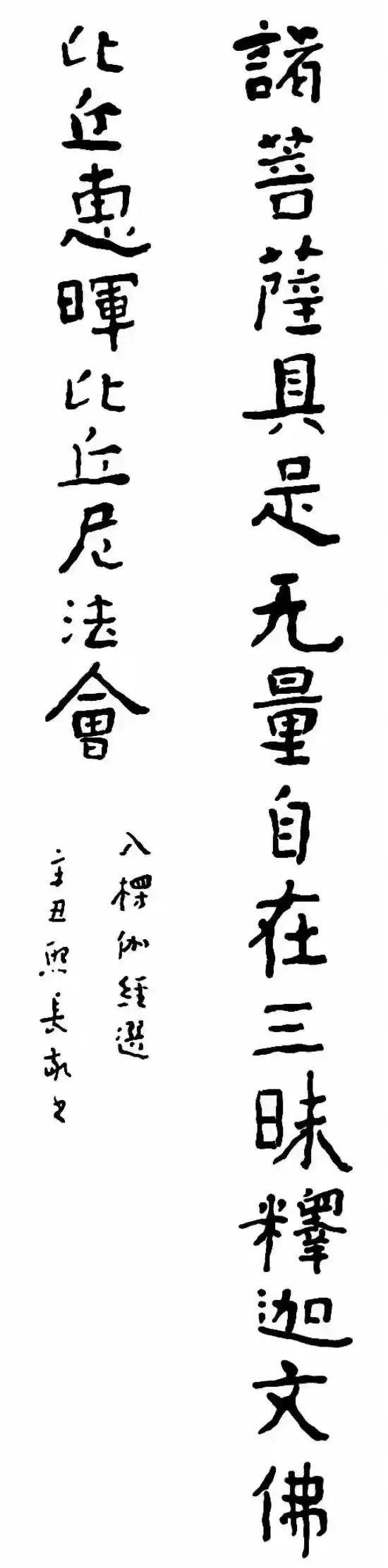 观金熙长先生所书榜书大楷《入楞伽经》尺八屏八条屏,最先触目的不是笔墨的浓淡干湿,而是一种跳脱技法之外的“浑成感”——没有刻意的刚柔对比,没有炫技的驰骋笔势,恰如谭峭《化书》所云“若黄帝之道熙之然,君子之风穆之然”,像明月漫进窗牖、清风拂过衣襟,看得见余晖脉脉,却握不住刻意的痕迹。这份“不刻意”,正是他书法美学最动人的起点。