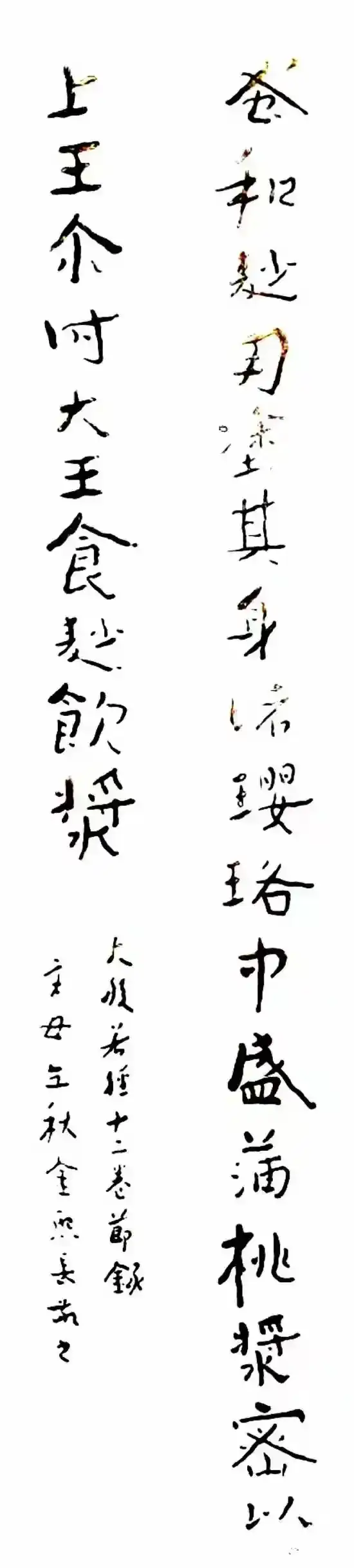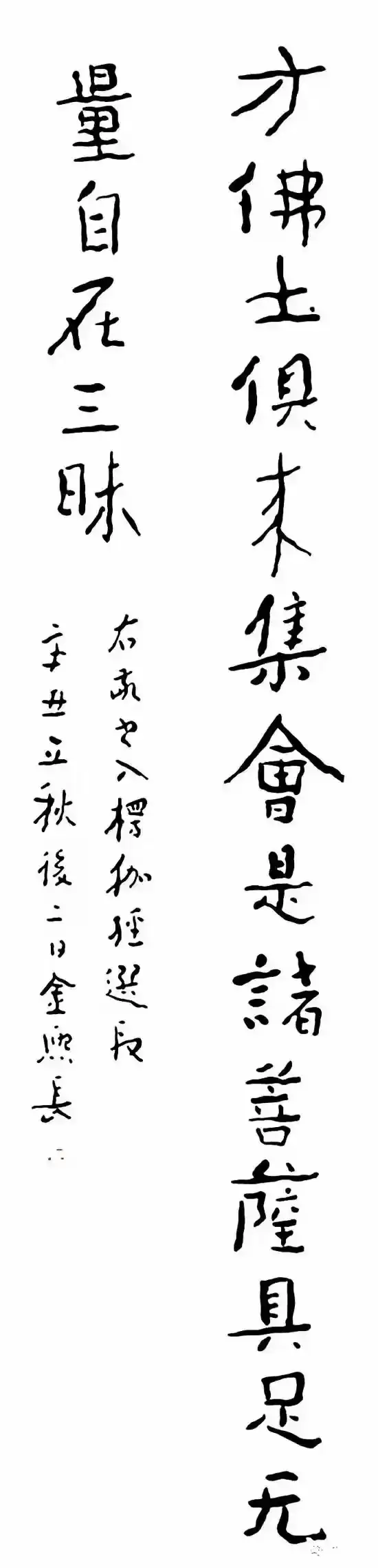 如今看很多书法作品,要么困在“古法”里不敢越雷池,写得像复印纸般刻板;要么为了“创新”而刻意求怪,笔墨浮躁得让人眼晕。金熙长先生的难得,正在于他把“技法”“经典”“心性”拧成了一股绳——他的笔意从古法来,却带着自己的思考;他的笔境从经文中来,却落回到人间烟火;他的书风看似“无状无容无象”,实则是“以心写形”的结果。看他的《入楞伽经》,不只是看一幅书法作品,更像听一位通透的人谈“如何在传统里找自己,在修行里爱生活”——这或许就是书法美学的终极意义:笔墨不止是笔墨,更是人心的镜子;写字不止是写字,更是对“真”的追寻。