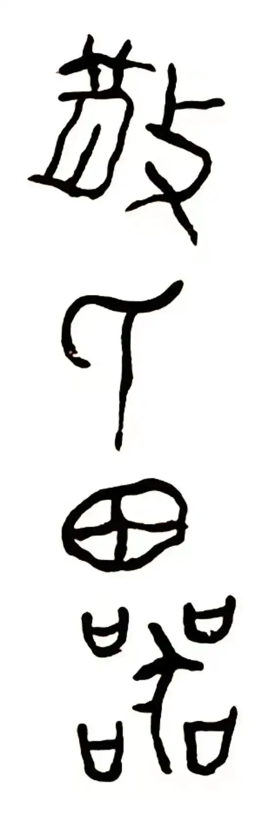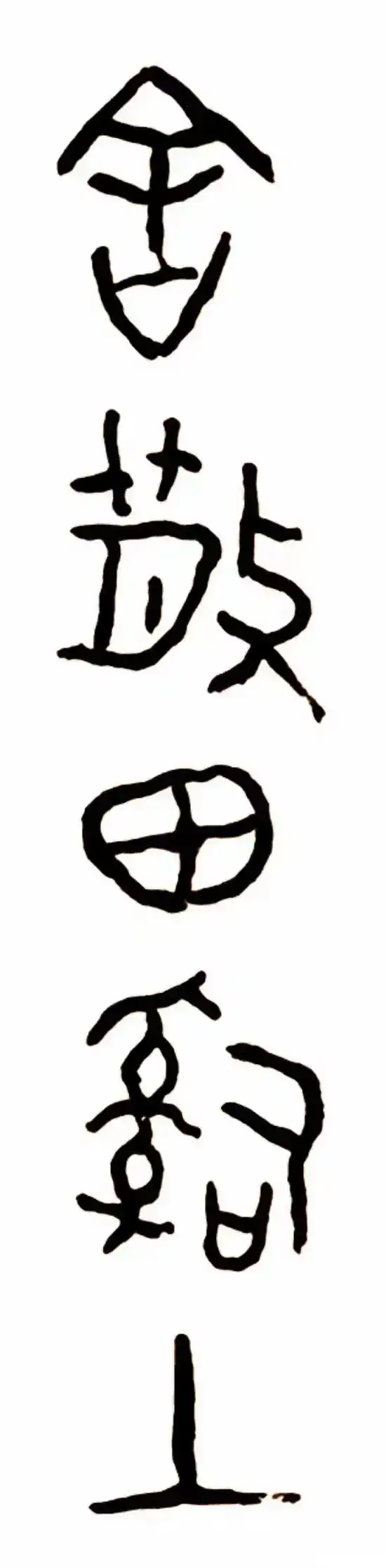 散氏盘,西周晚期青铜器,因铭文中有“散氏”字样而得名。清乾隆年间出土于陕西凤翔,现藏于台北故宫博物院。记述地是夨人付给散氏田地之事,是研究西周土地制度的重要史料。金熙长评《散氏盘铭文》为草书之宗,用笔粗旷,但并不粗野,线条稚拙但不幼稚,结体凝重,但不呆板。他还认为草无篆不古,楷无隶不雅,写草书如从此盘铭文入,则线老辣、恣肆、豪迈与古雅完美统一。