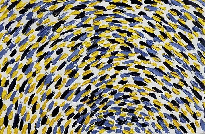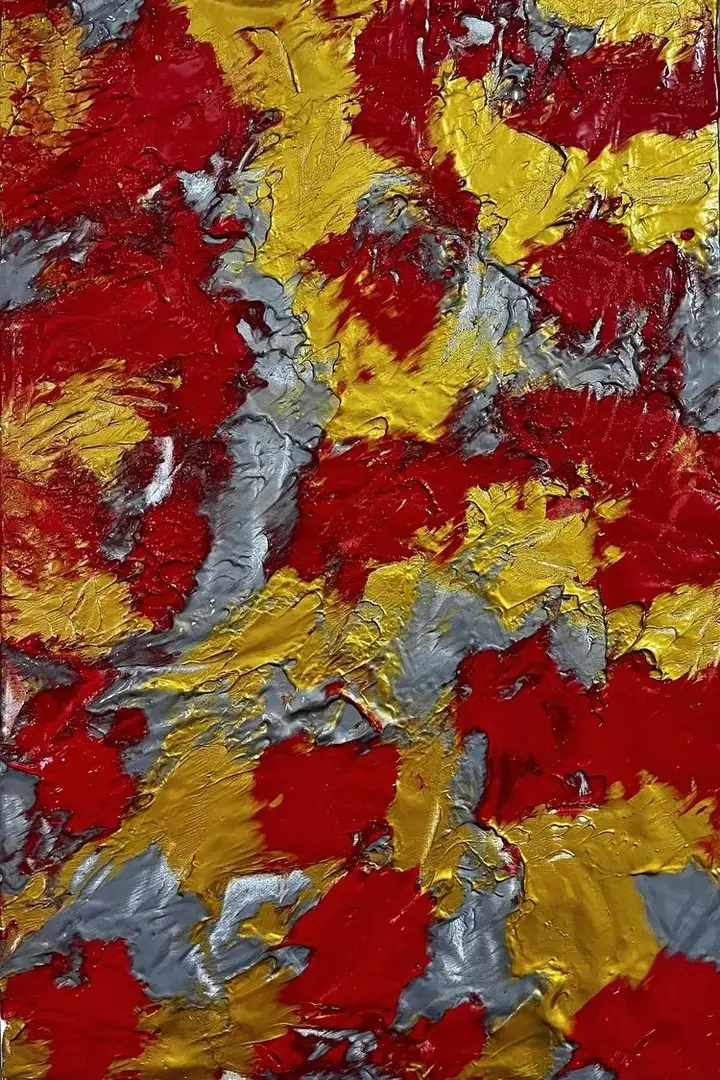 专注于抽象绘画,擅长纸本丙烯创作,代表作《潮音系列1》以海洋为主题,融合听觉与视觉表达(如作品阐述中描述潮音如“千军万马奔腾”和“乐器齐奏”)。