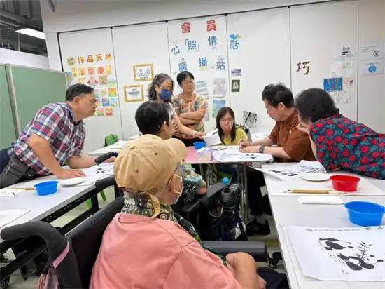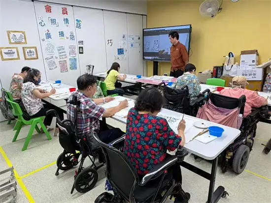 今年2025年,曾受邀出席元朗官立小学约50人的家长水墨画班,即场示范及教导中国传统绘画,梅花题材。