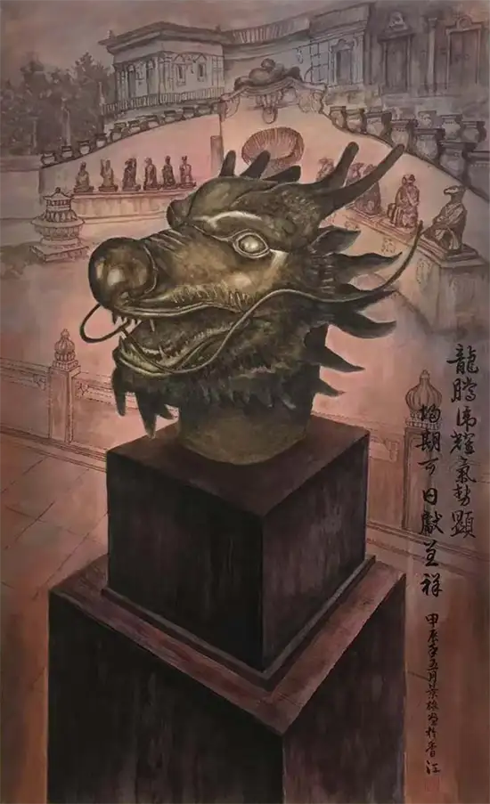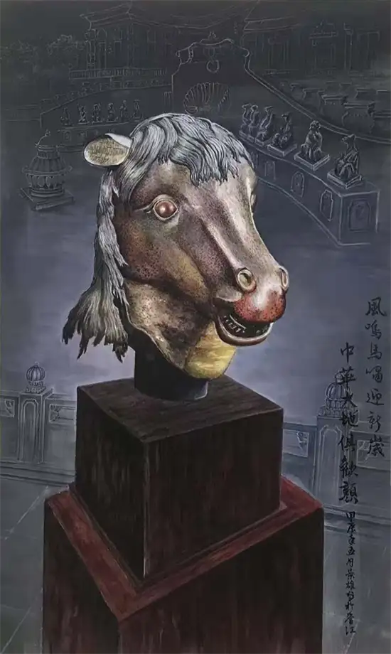 景雄:早前得知何鸿燊斥资将马首铜像回归圆明园,感叹当年这十二个精美的肖兽铜像在历史上被英法联军劫掠后流失海外,现在重归家园,有感而发。这些铜像意义重大,是中西文化交融的见证物,集合了中国十二生肖文化和欧洲雕塑的完美结合。如回归祖国,深感欣慰,所以决定画这几幅画供大家欣赏,永记历史。