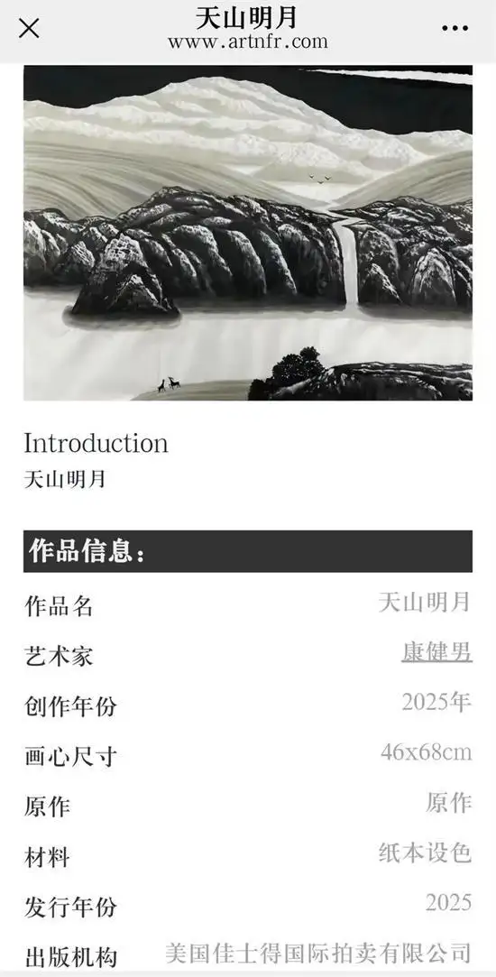 书画家康健男作品《天山明月》艺术价值再获市场认可